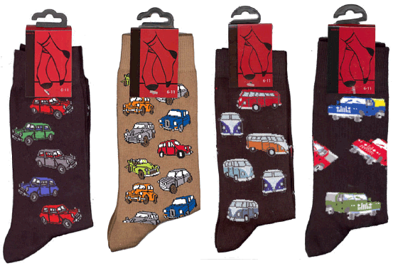 Assorted fun, colourful and comfy motoring themed socks for the serious car enthusiast